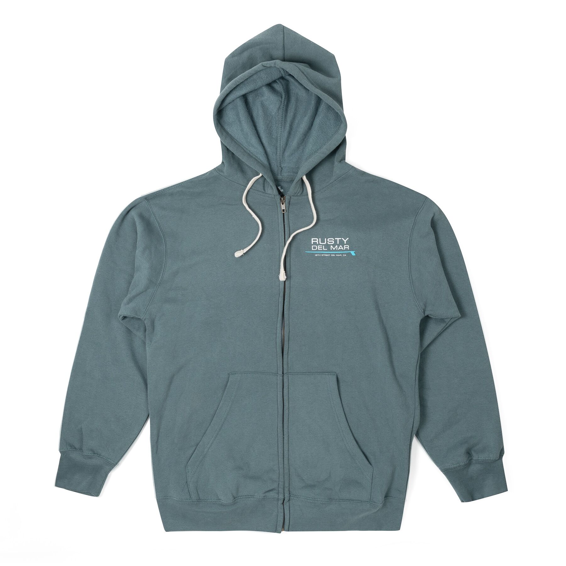 3 Palm Zip Hood in marine. Classic styling. This design is a shop favorite! Heavyweight fleece.