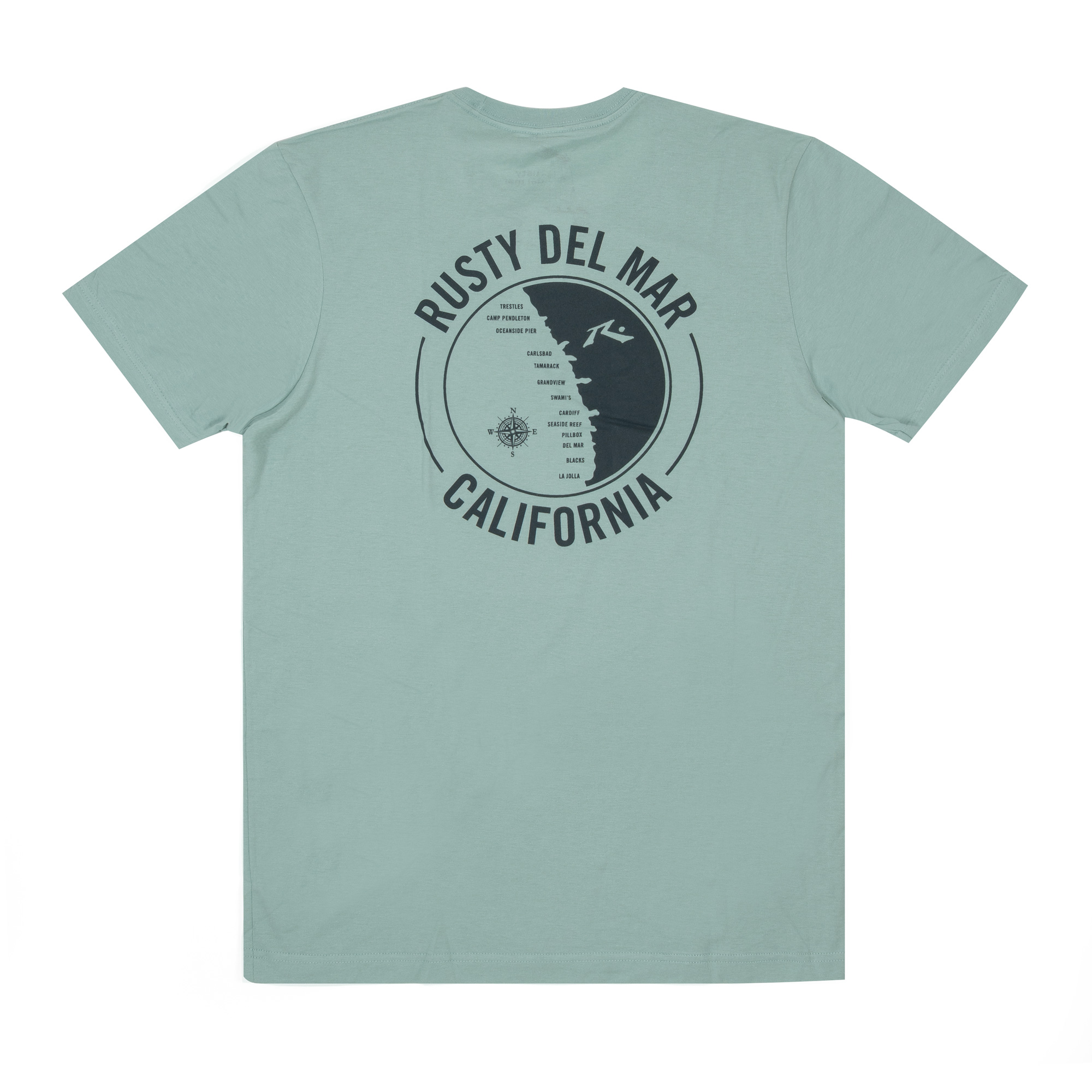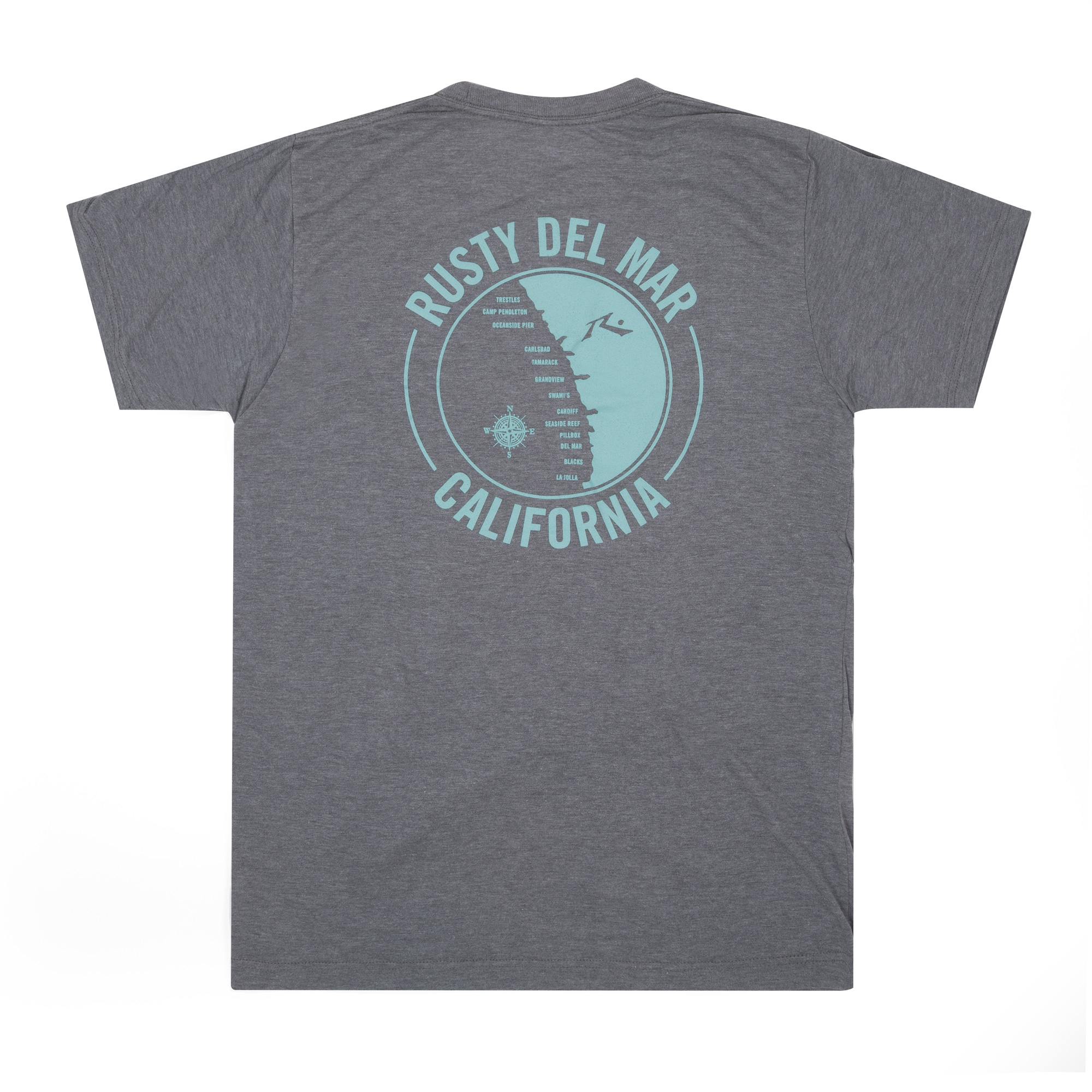 RDM Surf Map Men’s T-Shirt is a top seller at Rusty Del Mar. Timeless as the spots on our coast. 100% Cotton. Machine Wash Cold. Printed in California.